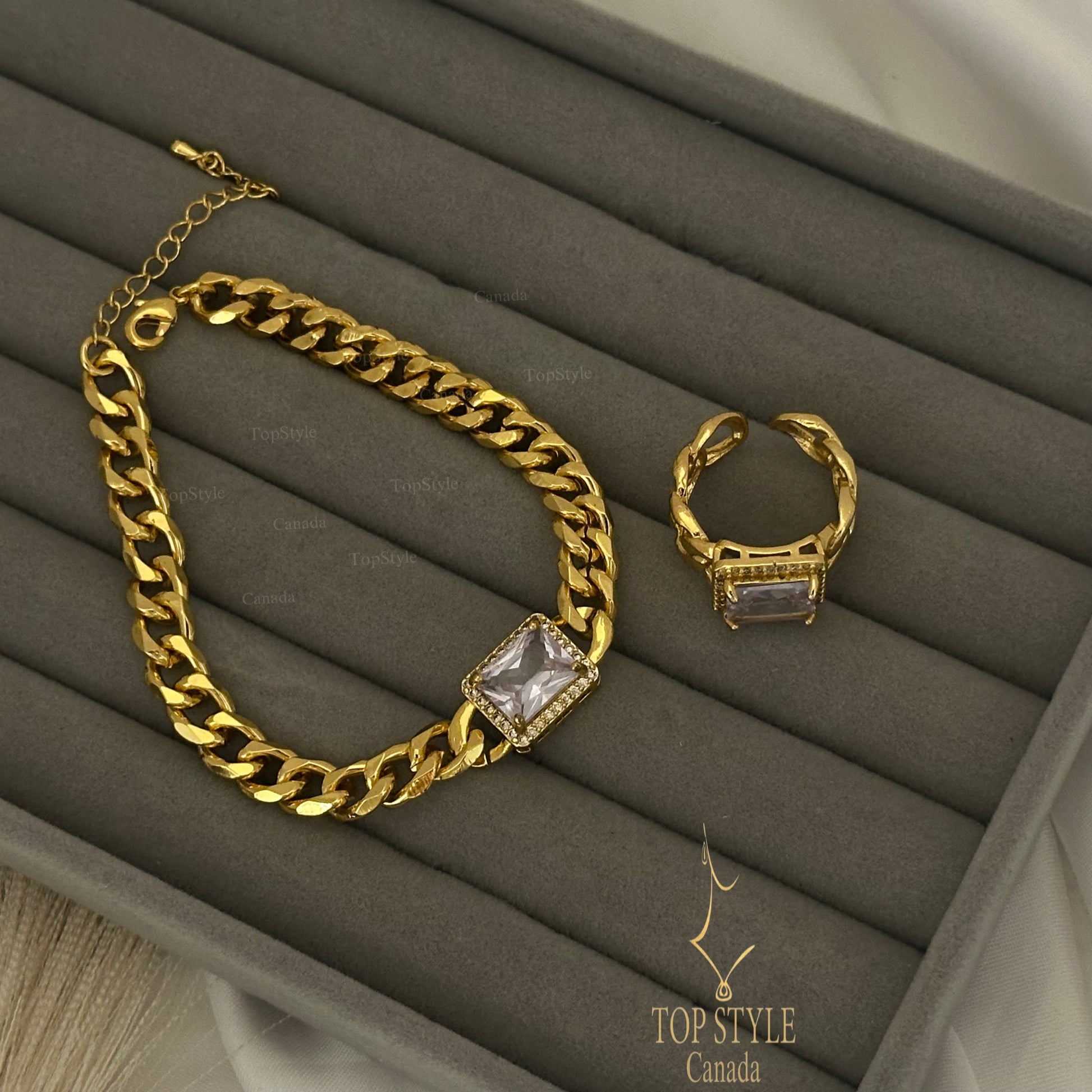 21K Gold Plated Chain Half Set (Bracelet+Ring)